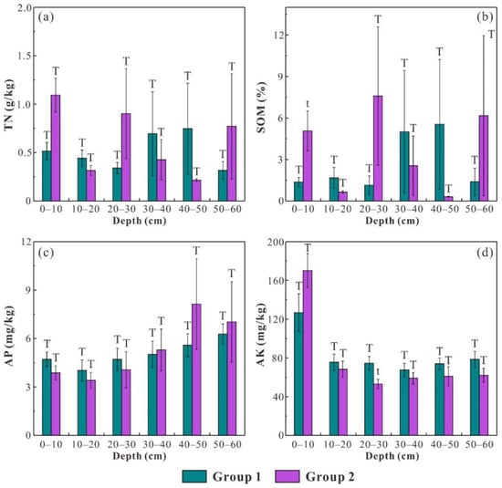 - The statistical results indicate that K factor is negatively correlated with SOM (r = −0.380, p < 0.01) and TN (r = −0.362, p < 0.01), while Ks is negatively associated with AP (r = −0.229, p < 0.01) and AK (r = −0.180, p < 0.05). The phenomenon should be attributed to the fact that TN and SOM mainly exist in particulate form, while AP and AK are always dissolved in soil solutions, and their mobility is largely influenced by the leaching process in soil profiles. The intriguing results indicate that the conservation of different soil nutrients requires different reclamation measures.