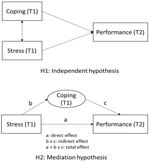 To address these gaps, we conducted a longitudinal study focusing on general Japanese employees to survey how coping profiles would affect worker performance (i.e., presenteeism). Most studies have shown that distress directly influences work performance [,]. However, little is known about whether coping profiles affect performance independently of stress or whether they mediate the relationship between stress and performance. Therefore, we formulated the following two hypotheses: First, a problem-focused coping profile would positively affect work performance, whereas emotion-focused and dysfunctional coping profiles would negatively affect work performance (Figure 1, H1). Second, coping profiles may mediate the relationship between perceived stress and work performance. Thus, we examined the potential mediating role of coping profiles in the prospective relationship between perceived stress at baseline and work performance at follow-up. We also aimed to determine the proportion explained by the mediating effect of each coping profile between them (Figure 1, H2).