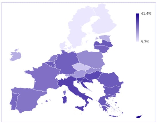 The distribution, by country, of people prioritising the development of a European health policy in 2021 is presented in Figure 4. Cyprus stands out with the highest registered value, 41.4% of the respondents being in favour of a European health policy in response to the coronavirus pandemic. Next, we noticed a group of countries with high shares of individuals prioritising the European health policy among the measures to combat the health crisis: Slovenia and Croatia with 33.3%, Italy with 32.8% and Hungary with 31.6%. At the other end of the hierarchy, we find the Nordic countries, Sweden, Finland, and Denmark, with a maximum share of 10% of individuals who agree that the development of a health policy at the European level should be prioritised as a measure to fight the pandemic.