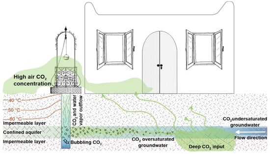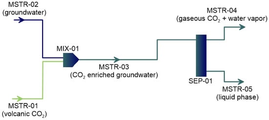 Simulations of the mixing between groundwater and CO2 were performed using the open-source chemical process simulator DWSIM 6.7.1 []. Dates and meteorological conditions during surveys are reported as daily averages in Table 1.