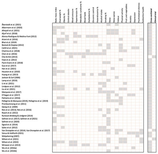 As this review sought to identify baseline nonwork duty-related prevalence of cardiometabolic health risk factors, we did not examine risk factor quantification during or immediately following flight duty periods, as these work characteristics often elicit acute inflated risk prevalence for factors such as psychological fatigue, sleep disruption, and other psychological distress-related parameters [,]. Thus, the present review did not capture the magnitude of work duty-induced perturbations to behavioral and psychological cardiometabolic health risks.