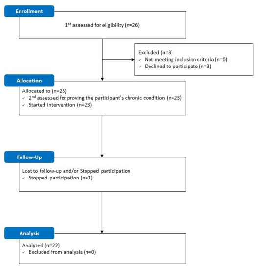 The recruitment of participants for this study started in July and was completed in August 2020. The first pre-measurement started in mid-August 2020, and the intervention and evaluation were completed in November 2020. The flowchart in Figure 1 shows the research procedure that was used in this study.