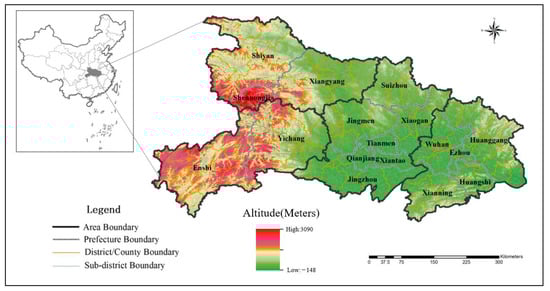 Administrative divisions, terrain, and areal division of four regions in Hubei.