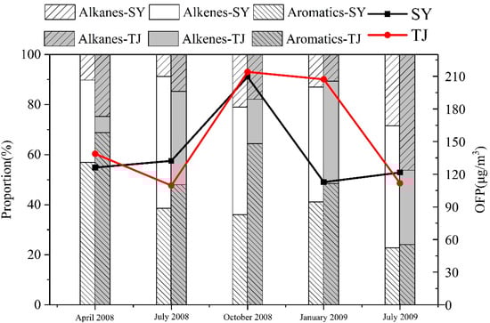 3.1.2. Seasonal Characteristics of Ambient VOCs of Shenyang and Tianjin