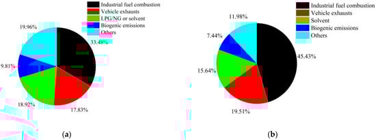 - Zhang, Y.X.; An, J.L.; Wang, J.X.; Shi, Y.Z.; Liu, J.D.; Liang, J.S. Source An;lysis of Volatile Organic Compounds in the Nanjing Industrial Area and Evaluation of Their Contribution to Ozone. Environ. Sci. 2018, 39, 502–510. (In Chinese) [Google Scholar]
