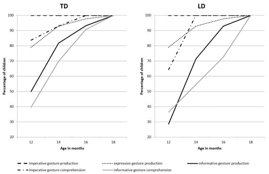 - Lüke, C.; Ritterfeld, U.; Grimminger, A.; Rohlfing, K.J.; Liszkowski, U. Integrated Communication System: Gesture and Language Acquisition in Typically Developing Children and Children with LD and DLD. Front. Psychol. 2020, 11, 118. [Google Scholar] [CrossRef] [Green Version]