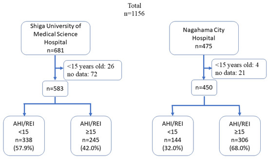 - Ohdaira, F.; Nakamura, K.; Nakayama, H.; Satoh, M.; Ohdaira, T.; Nakamata, M.; Kohno, M.; Iwashima, A.; Onda, A.; Kobayashi, Y.; et al. Demographic Characteristics of 3,659 Japanese Patients with Obstructive Sleep Apnea-Hypopnea Syndrome Diagnosed by Full Polysomnography: Associations with Apnea-Hypopnea Index. Sleep Breath. 2007, 11, 93–101. [Google Scholar] [CrossRef] [PubMed]