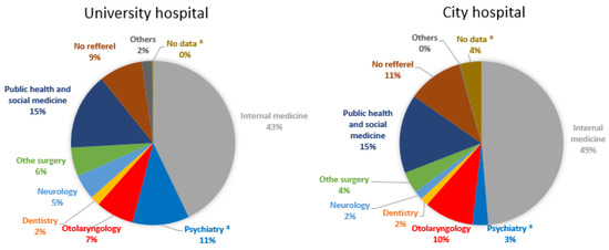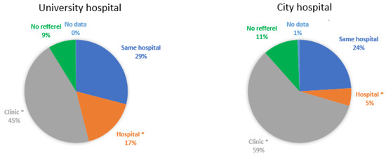 | University Hospital (n = 338) | City Hospital (n = 144) | p | University Hospital (n = 245) | City Hospital (n = 306) | p | |
