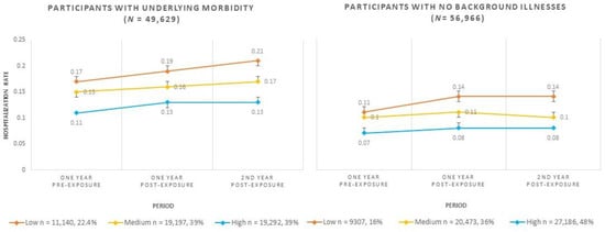 | Socio-Economic Status | Period | Hospitalization Rate | ||