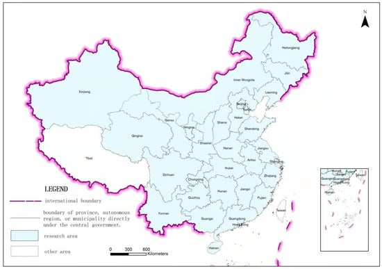 Using panel data from 2000 to 2017 for 30 provinces in mainland China (Figure 1), herein, a panel-data vector autoregressive (PVAR) model was employed to analyze the relationships among urban land expansion, land finance, and economic growth. This study offers a two-fold contribution to existing literature. First, the study provides a conceptual framework on the multiple causal relationship among urban land expansion, land finance, and economic growth, which has rarely been discussed in the literature. Second, the PVAR estimation was employed because of its capability to identify the dynamic effect of heterogeneity and the causal effects among urban land expansion, land finance, and economic growth. However, the interaction effects have been largely ignored in previous studies.