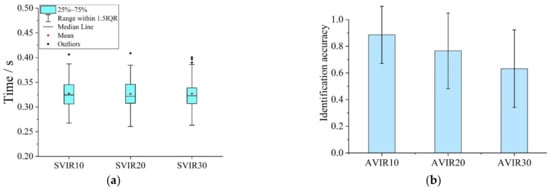 The driver’s memory in the driving process is a typical working memory [,]. The VWMT aimed at stimulating the driver’s working memory process, and the VIMT corresponded to the information input stage, and VIRT corresponded to the information extraction and identification stage in the working memory process. Figure 8 shows the fixation time and identification accuracy for seven-element pictures in the VIMT.