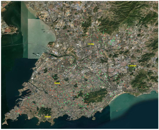 The main body of our investigation consists of socio-demographic characteristics, trip characteristics, and mode choice preferences, and covers two separate periods. The first-wave online survey was implemented from 1 June 2020 to 20 June 2020, while the second-wave online survey was implemented from 15 October 2020 to 30 October 2020. The reason for selecting these two waves was because the number of coronavirus cases in Qingdao remained stable at zero after 2 March 2020. Commercial activities here have already been got back on the rails, step by step, and citizens have put an end to teleworking and have gradually returned to regular work in the office. Although most of the major gatherings were not allowed and there were still requirements such as wearing a mask in public places, on the whole, people do not have any travel restrictions. Therefore, the first wave was selected in June 2020, after buffering for several months. The time period we selected was a significant point in our study since individuals easily recalled their usual daily routine from the pre-pandemic era, or they formed a new mobility pattern in the post-pandemic era. After all, China was one of the areas hardest hit by the disease; their attitudes toward mass transport and auto transport were heavily impacted by the pandemic. In addition, the second-wave survey was collected after new confirmed cases of COVID-19 were reported on 11 October 2020. At this dividing point, the government declared that Qingdao was changed from a low-risk area to a high-risk area, and people were allowed to travel there only as a last resort. The government organized mass testing for the entire population of roughly nine million people within five days after the discovery of a dozen cases. We adopted this period as our second-phase study time. We would like to scrutinize the effects of the pandemic on motorized transportation in the various “new normal” phases. Even though most of the residents were vaccinated and the government implemented strict measures, it was not true that the virus would no longer be able to spread. The COVID-19 cases may break out in a small-scale area and the numbers may go up again. Divided according to the IP addresses of the respondents, the distribution of the locations of the respondents in the two-wave survey is shown in Figure 2.