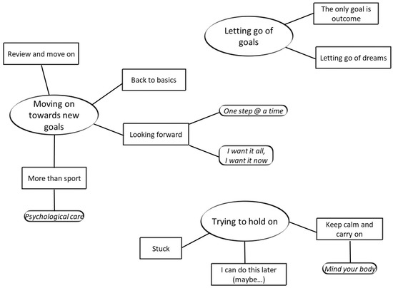 This overarching theme highlights the experience of those participants who struggled to let go of their goal and instead somehow persisted with it. The idea of “giving up” has often been depicted as negative in sport, with an unspoken concept of weakness attached to it. While holding on to previous goals does not need to be considered a priori as negative, the risk of frustration, and a loss of self-esteem and control in the face of unattainable goals that cannot be let go is present. The themes identified in our results highlight different experiences of participants who were not able or did not want to let go of their goals and the following effect.