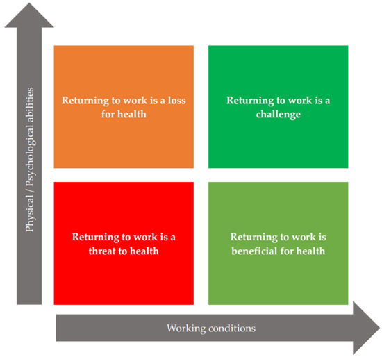 We argue that promoting the RTW of BCSs is essentially based on three aspects: (i) enhancing the health-related quality of life [26,27]; (ii) adjusting the work situation, work organization, and management practices [6,28,29]; and (iii) coordinating stakeholders, (i.e., BCSs, healthcare professionals and managers), while considering the specific needs of each patient.