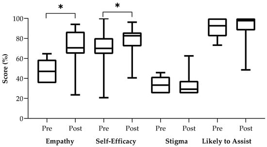 APA StyleAbrams, M. P., Salzman, J., Espina Rey, A., & Daly, K. (2022). Impact of Providing Peer Support on Medical Students’ Empathy, Self-Efficacy, and Mental Health Stigma. International Journal of Environmental Research and Public Health, 19(9), 5135. https://doi.org/10.3390/ijerph19095135