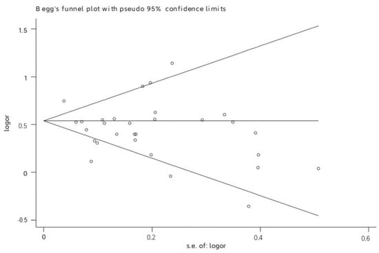 Begg’s test did not show significant publication bias (p = 0.986) (see Figure 3), and Egger’s linear regression test suggested a mildly significant publication bias (p = 0.039). However, no trimming was needed to be performed when the nonparametric trim-and-fill method was used, demonstrating the reliability of the findings (see Figure S2).