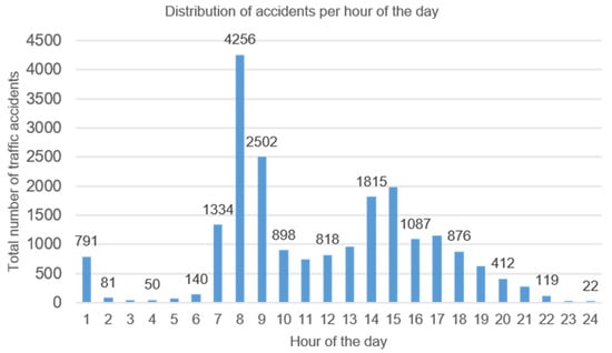 Distribution of total number of accidents analyzed, according to the hour of the day.