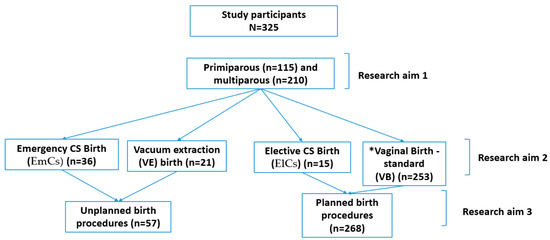 Participants and research aim flow diagram. Abbreviation: * the study used terminology of vaginal birth instead of standard vaginal of delivery.