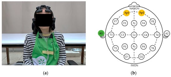 Data were collected by amplifying the electrical signal measured by attaching a dry electrode to the scalp. This device was designed to be harmless to humans and was certified by the European Commission and the Federal Communications Commission []. The electrode placement complied with the international 10–20 electrode arrangement system [].