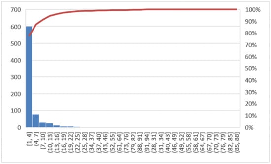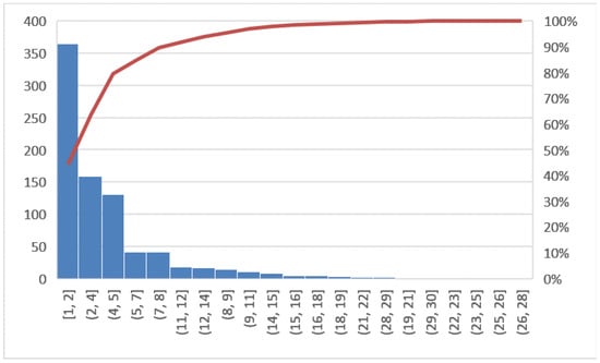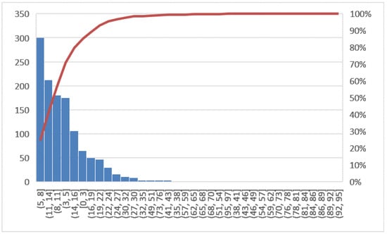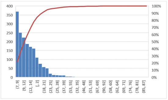 In this section, a comparison of before and after the COVID-19 emergency was implemented. First, the Pareto charts shown in Figure 6 and Figure 7 compare the LOS and Figure 8 the DRG relative weight in the two years before and after COVID-19, respectively.