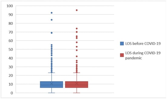 Box plot of LOS (2018–2019 vs. 2020–2021).
