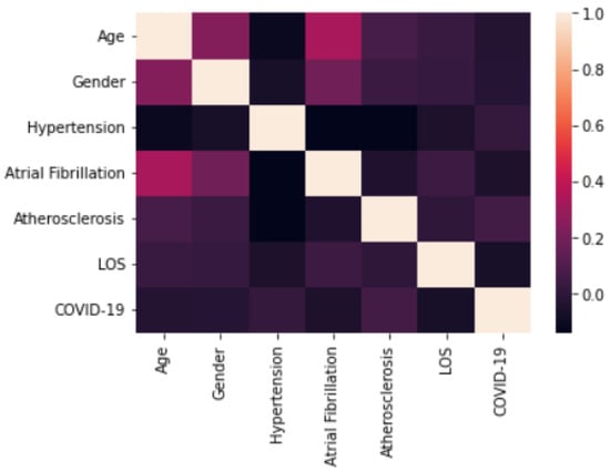 By looking at the SVM coefficients, it is possible to identify the main features used in classification. In this case, the higher coefficient is associated with the LOS, in accordance with the results of the statistical analysis.
