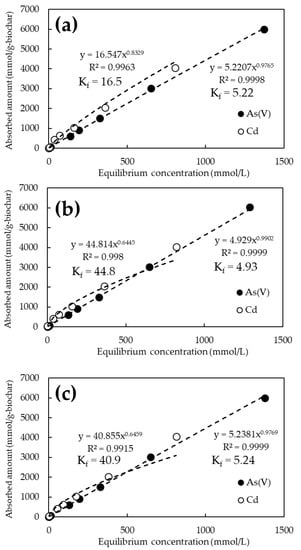3.2. Evaluation of As and Cd Adsorption Capacities of P. vittata Biochar