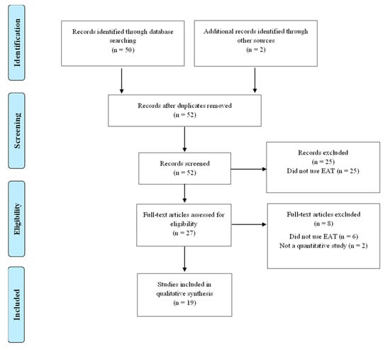 The majority of studies (87.5%; n = 17) were conducted in educational settings, such as high schools and universities; however, some studies have included heterogenous population in terms of age (adolescents, young adults, and middle-aged adults). Additionally, there were two studies that recruited participants from a weight loss center in Egypt [] and from a fitness programme in Iran []. The contextual setting of the study may have created a potential selection bias, leading to higher self-reported HRDE. The included studies used versions of EAT-26 and EAT-40 in different languages, and the prevalence estimates for high-risk disordered eating could be partially related to differences in interpretation of the questionnaire items, which may be prone to bias due to their self-reported format. The EAT-26 and EAT-40 might have limitations when applied to populations of different cultures []. In addition, the EAT-26, EAT-40 and AN criteria in DSM IV has a component pertaining to loss of period which can underestimate the prevalence of males suffering from HRDE and ED []. Finally, the EAT-26 and EAT-40 are not sensitive to binge eating disorder.