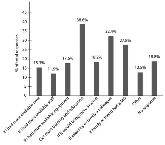 | If it would bring more income to my practice | 26 (22.4) | 6 (10) |