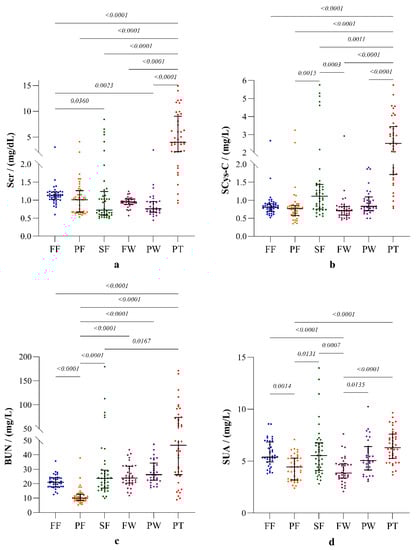 | SCys-C (mg/L) | 0.810 (0.693–0.903) | 0.770 (0.578–0.855) | 1.110 (0.760–1.440) | 0.710 (0.590–0.828) | 0.830 (0.710–1.090) | 2.510 (1.715–3.443) |