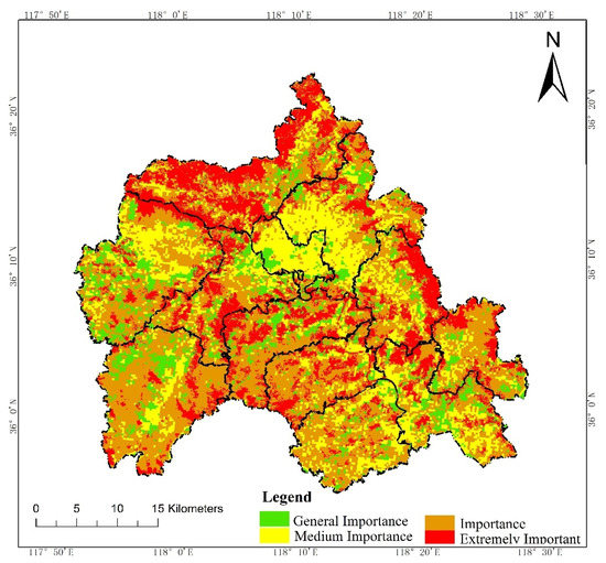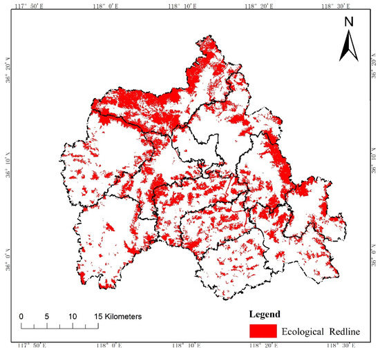 The Guide to Delimitation of Ecological Redline [58] has pointed out that determining the ecological redline should be synchronized with spatial identification. The associated steps are as follows: (1) evaluate the intensity of the ecosystem service function and the sensitivity of the ecological environment in the county using the relevant technical methods in the Guidelines for the Specification of the Ecological Redline; (2) specify the ecological elements in the county guidelines that must be protected, such as national parks, nature reserves, and forest parks; and (3) determine the final ecological redline by superimposing the above evaluation results, the ecological elements that must be protected, and the ecological protection options of the county.