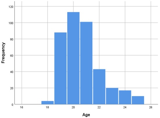 The age of the sample was between 18 and 25 years; μo and Mdn are 20, M = 20.68, and SD = 1.506 (Figure 1).