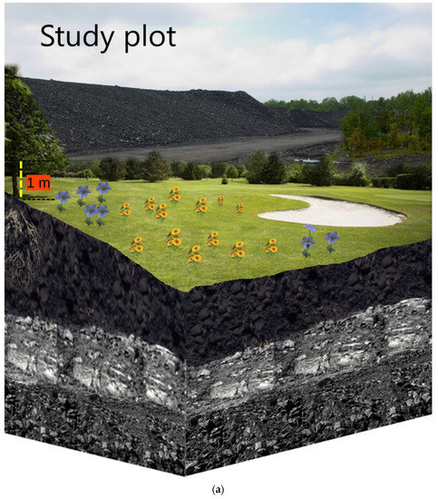 The research was conducted in Zabrze, in an essential coal mining industrial area of the Upper Silesian Region (southern Poland). Soil substrate effectiveness in the area has degraded as a result of coal mine exploitation and processing, which began in May 2010. A coal seam and clay shales underlain sandstone layers and a calcareous substrate were the parent rock. The solid waste formation procedure consisted of the following elements: (a) post-flotation coal waste (25%), (b) municipal sewage sludge (35%), (c) crushed stone (25%); (d) fly ash (15%). A sub-structure of constructed sites comprising crushed stone (30 cm-thick) was produced, particularly for mine soil reclamation management to conduct remediation on mine heaps. Upon processing, granulated material was observed and according to the FAO definition, it was classified as sandy clay loam. Bioreclamation was initiated with soil substrate with a thin surface layer (50 cm-thick) for plant root establishment.