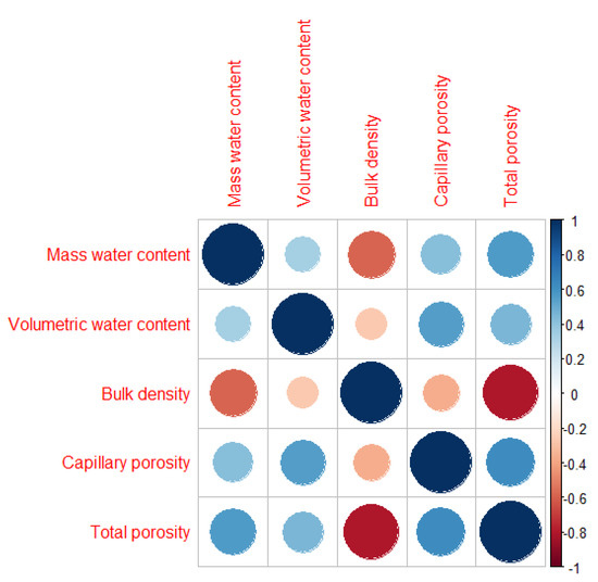 By parametrising van Genuchten’s equations [37] and using water characteristic curves made for pressure chambers with porous ceramic plates, the water content was calculated. The Kopecky method was used to estimate bulk density and porosity [38].