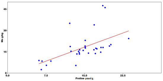 Results of multivariate regression between proline (Pro) concentration and Mn content.