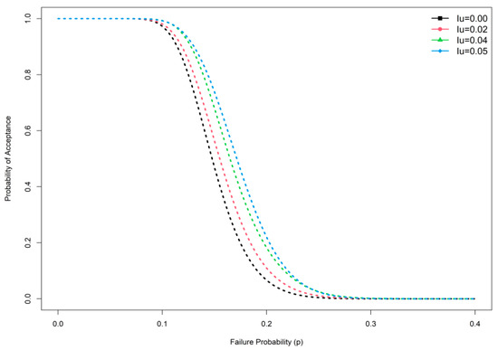 where and are the failure probabilities of the producer’s and consumer’s risks, respectively. These acceptance chances can be found by means of the following expressions: