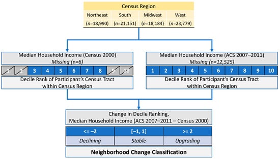 Chrisinger, B.W.; Springfield, S.; Whitsel, E.A.; Shadyab, A.H.; Krok-Schoen, J.L.; Garcia, L.; Sealy-Jefferson, S.; Stefanick, M.L. The Association of Neighborhood Changes with Health-Related Quality of Life in the Women’s Health Initiative. Int. J. Environ. Res. Public Health 2022, 19, 5309. https://doi.org/10.3390/ijerph19095309