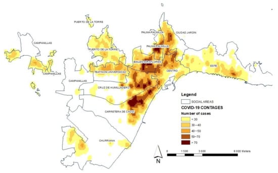 The differences found in the COVID-19 impacts maps for each category also show this segregation, which is essentially explained by the ability of groups with the highest economic capacity to select a space to live in, and the relative lack of living-space choices for those of lower social status. This concept is consistent with the findings of previous studies [,,].