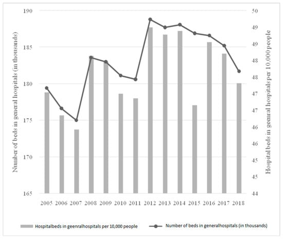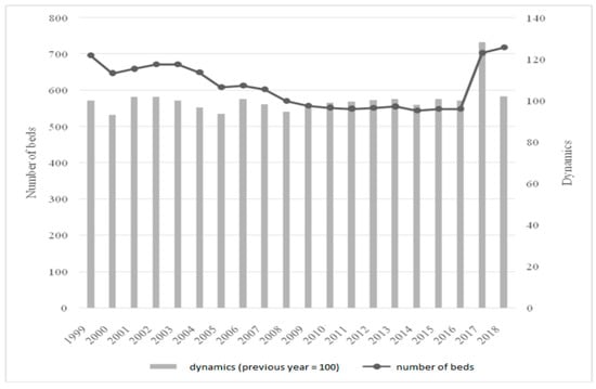 The key hospital resource that enables the provision of healthcare services is beds; their number in the analyzed period is presented in Figure 1.
