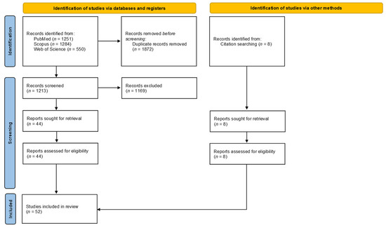 - Page, M.J.; McKenzie, J.E.; Bossuyt, P.M.; Boutron, I.; Hoffmann, T.C.; Mulrow, C.D.; Shamseer, L.; Tetzlaff, J.M.; Akl, E.A.; Brennan, S.E.; et al. The PRISMA 2020 statement: An updated guideline for reporting systematic reviews. BMJ 2021, 372, 105906. [Google Scholar] [CrossRef]