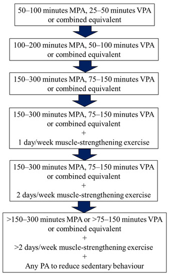 - World Health Organization. Global Recommendations on Physical Activity for Health. 2010. Available online: https://www.who.int/publications/i/item/9789241599979 (accessed on 27 August 2021).