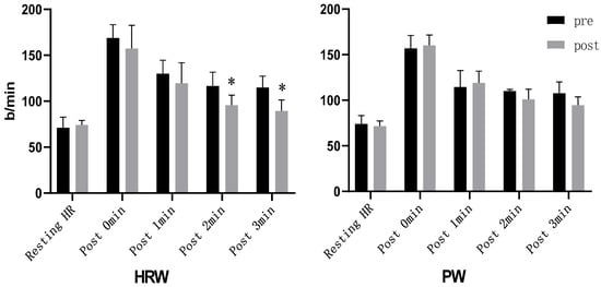 | HRW | 176.89 ± 11.36 | 162.44 ± 21.39 * | 0.029 |