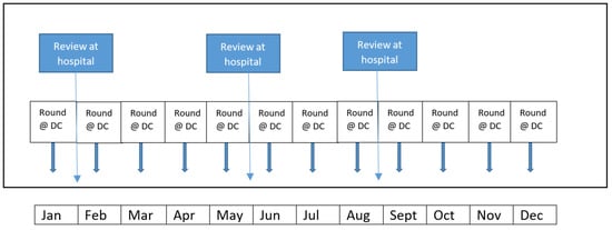 | Structure | Number of review per year (physical and telemedicine) |