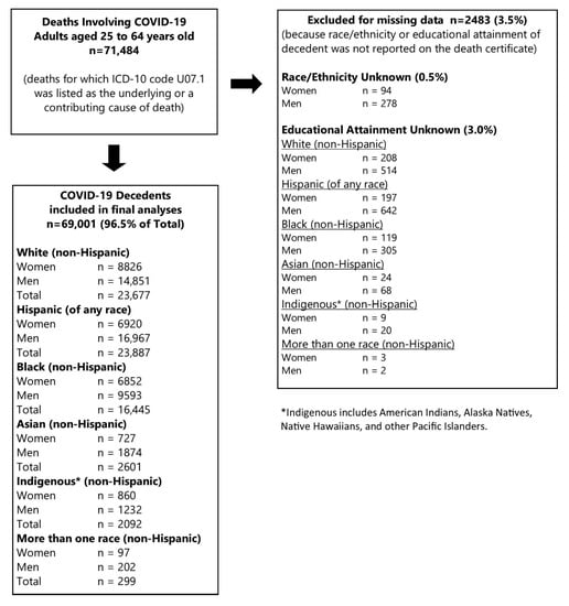 APA StylePathak, E. B., Menard, J. M., Garcia, R. B., & Salemi, J. L. (2022). Joint Effects of Socioeconomic Position, Race/Ethnicity, and Gender on COVID-19 Mortality among Working-Age Adults in the United States. International Journal of Environmental Research and Public Health, 19(9), 5479. https://doi.org/10.3390/ijerph19095479