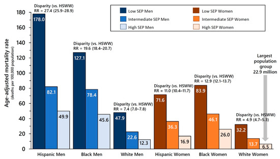 3.5. Disparities in COVID-19 Mortality: Independent and Joint Effects of Socioeconomic Position, Gender, and Race/Ethnicity