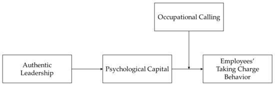 The interactionist perspective has also been used to view employees’ taking charge behavior, in which not only individual characteristics but also contextual factors influence taking charge behavior [34,35]. Employees’ taking charge behavior often requires not only resources from organizations but also intrinsic motivation from inside [12,36,37]. From the perspective of COR theory, people’s reinvestment of resources depends on their perception of the value and significance of taking charge behavior [18]. Therefore, we assume that employees with high occupational calling, who emphasize realizing self-value through work, will obtain more resources by taking charge at work to enhance the influence of authentic leadership on employees’ taking charge behavior through psychological capital.