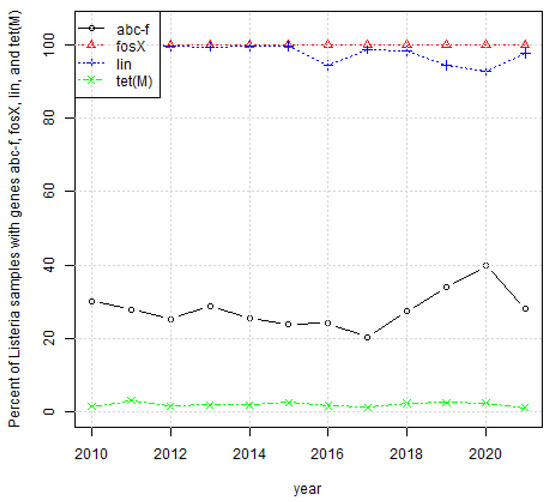 Investigation of Antimicrobial Resistance Genes in Listeria monocytogenes from 2010 through to 2021