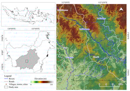 Kalimantan Island is an ASGM hotspots with alluvial operations []. Illegal mining activities are widespread on this island, even in conserved areas, negatively affecting biodiversity and human health []. Alluvial-based ASGM activities affect waterbodies and the surrounding environment, resulting in deforestation; high mercury contamination; and changes in geomorphological processes, biogeographic conditions, hydrological regime, and river courses [,].