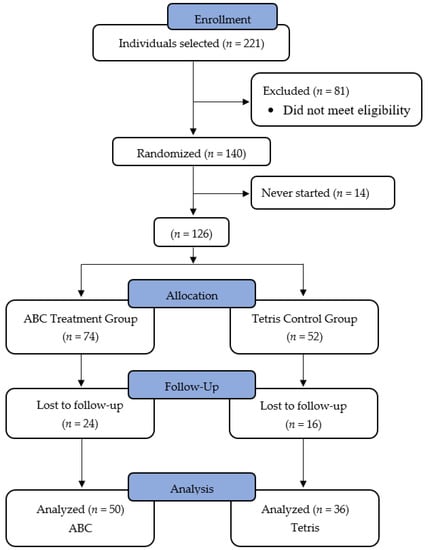 20] further confirmed the viability of Tetris as an ACT group in their study involving 28 healthy older individuals (M age = 69 years old). Participants were instructed to either play Tetris or the video game “Brain Age” for 15 min per day, for at least five days per week, for four weeks. Despite all other factors being controlled for, only participants in the treatment group displayed enhanced processing speed and executive function.