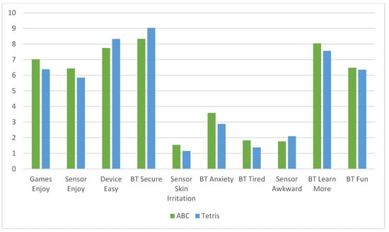 Mean user-experience (UX) satisfaction ratings (10-items) showed similar scores for the ABC (M = 7.93, SD = 1.17) and Tetris (M = 8.00, SD = 1.18) groups, representing high-user satisfaction with the CT-NF program, regardless of treatment group. (See